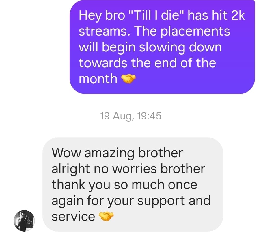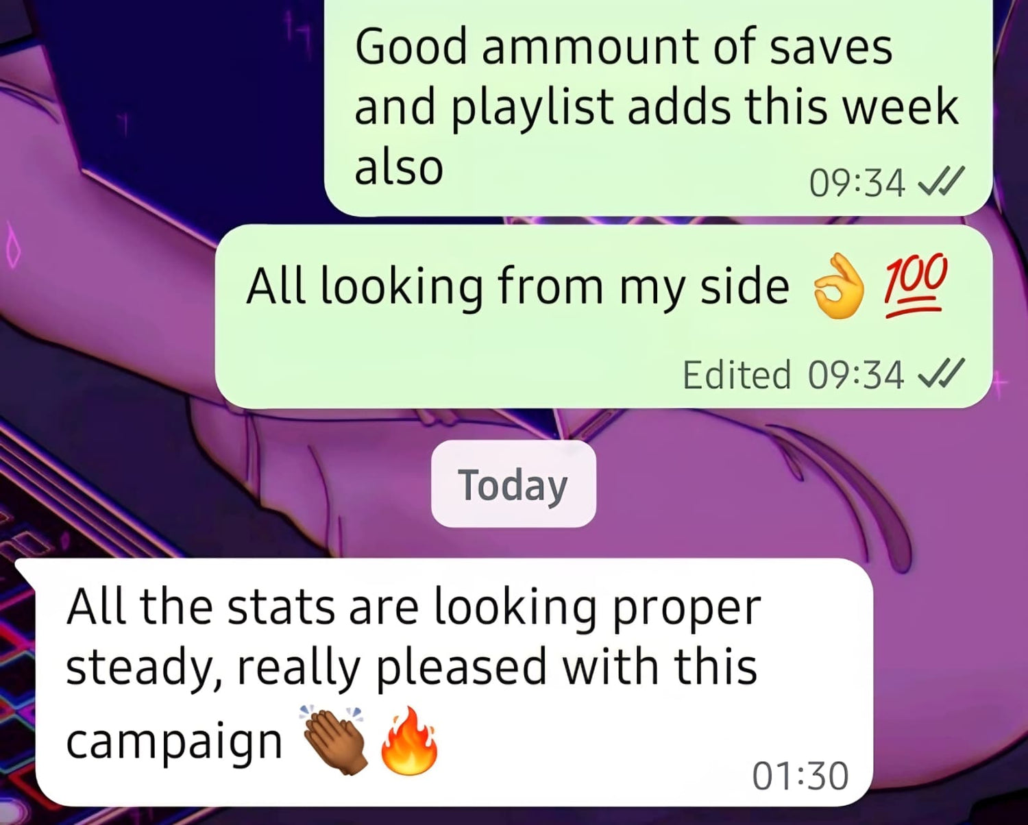 Super happy with the results, saw a real rise in both streams and new active listeners. Great communication from the team. Would recommend and will be using their service again.